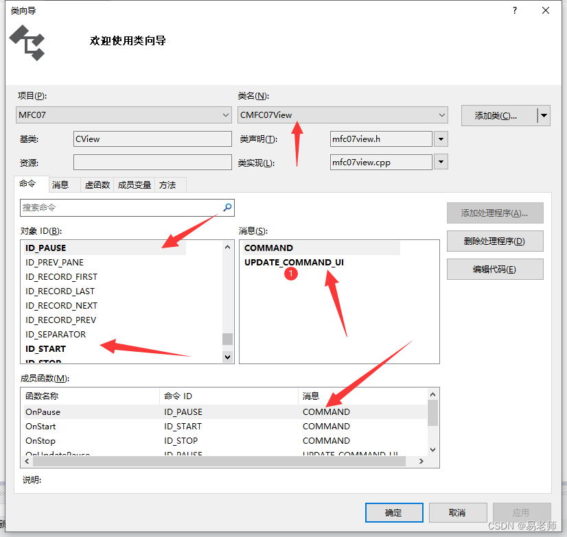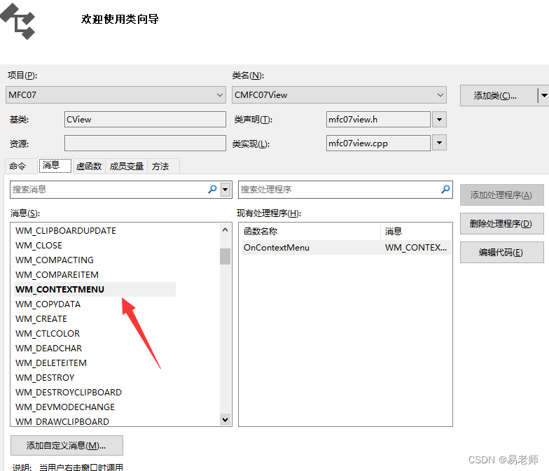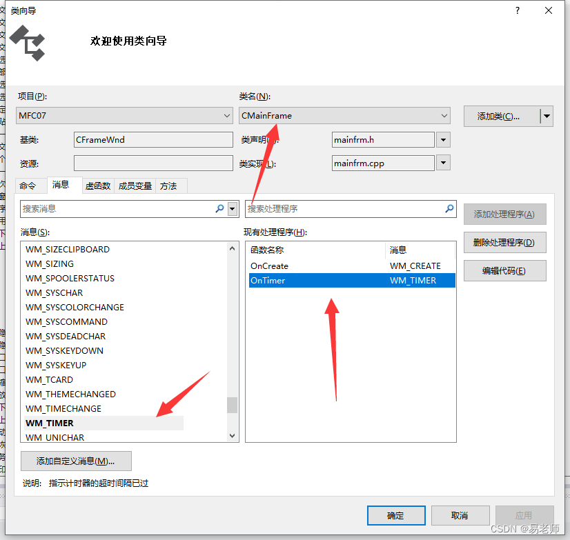 类向导中可以很方便点挂上消息处理函数:
