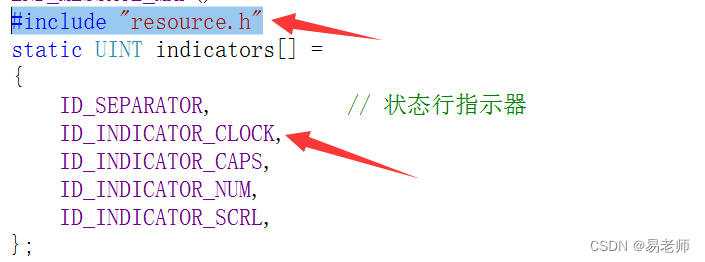 在主框架类的indicators中添加对应的ID(可能报错,添加resource.h可以解决问题)