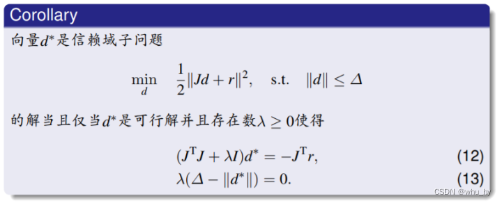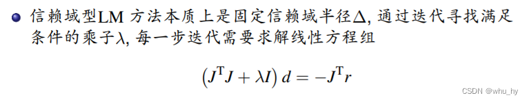 这里的话就是上面这个公式,和高斯牛顿的区别就是多了一个莱姆达*单位阵。