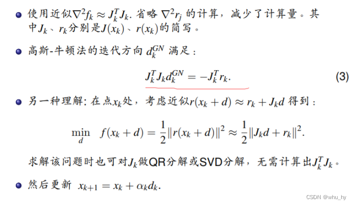 这个就是JTJ是Hessian矩阵的近似即可,知道这个就完事。这个的话也是推导出来两个公式,然后比较形式得出来的这个结论。