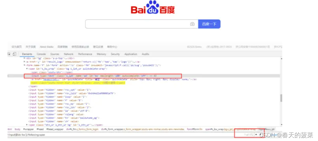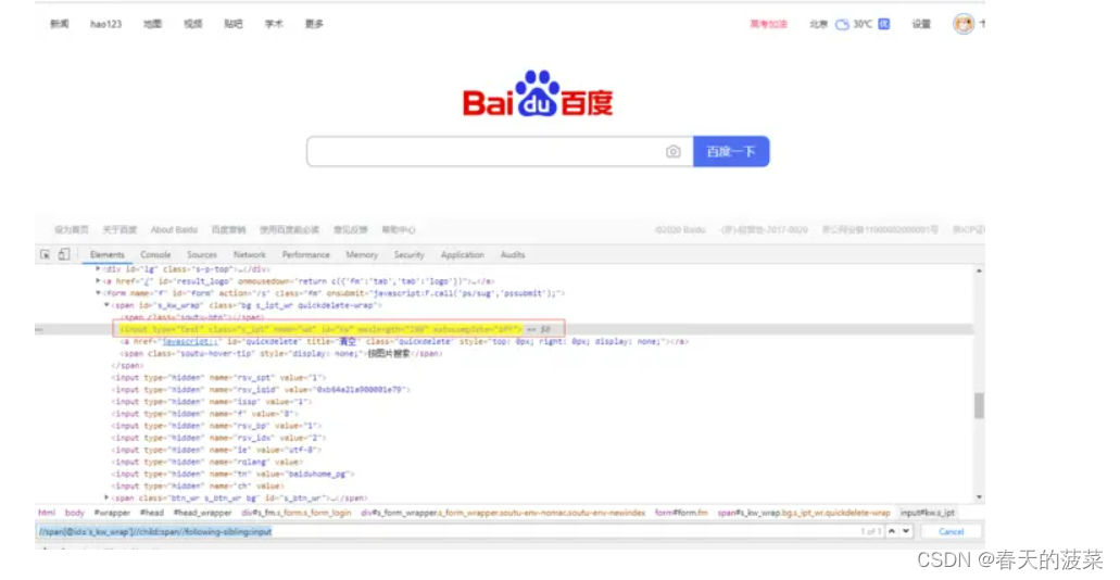 //input[@id=‘kw’]//parent::span 同等于 //input[@id=‘kw’]//…