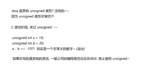 尽量不使用unsigned,对于int类型可能存放不下的数据,int unsigned同样可能存放不下,与其