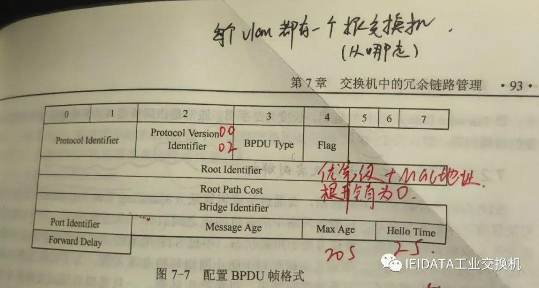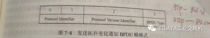(2)Protocol Version Identifier:版本号,长度为1字节,当数值为00时,表示使用协议IEEE802.d;当数值为02时,表示使用协议IEEE802.1w。