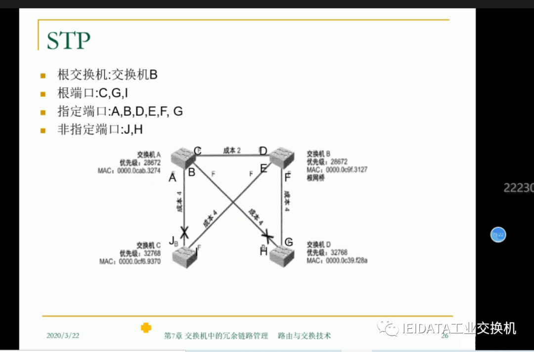 消除回路的方案也是通过在正常操作期间阻止四个接口中的传输或接收数据来解决的,阻止数据库的不稳定性是生成树协议的另一个功能。