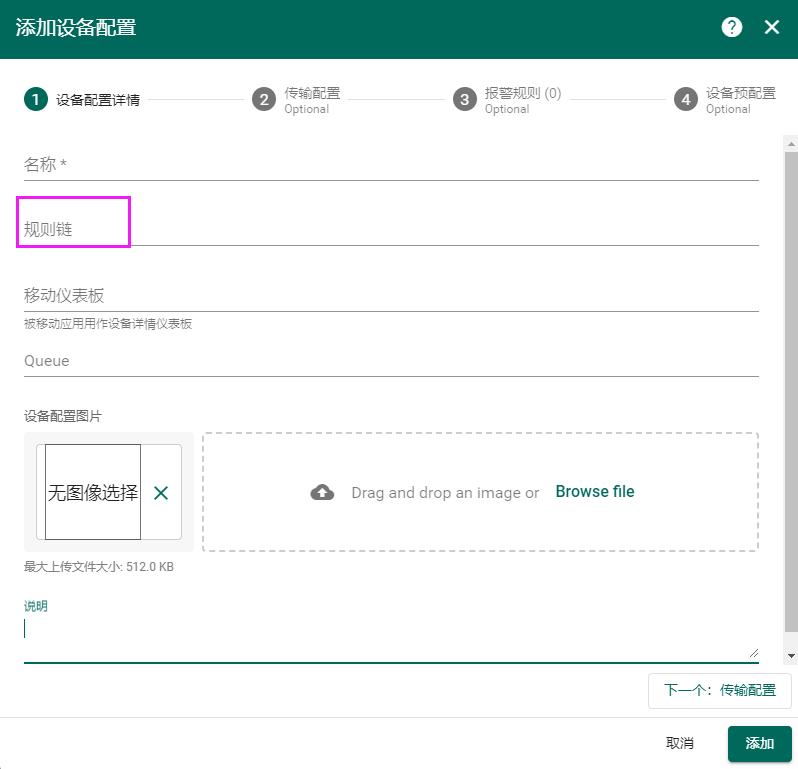 为了避免这种痛苦而平凡的活动,从 ThingsBoard 3.2 开始,您可以为您的设备指定自定义根规则链。新规则链将接收所有遥测、设备活动(活动/非活动)和设备生命周期(创建/更新/删除)事件。此设置在设备配置文件向导和设备配置文件详细信息中可用。