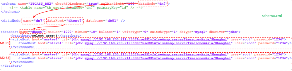 writeHost代表的是写操作对应的数据库,readHost代表的是读操作对应的数据库。所以我们要想实现读写分离,就得配置writeHost关联的是主库,readHost关联的是从库。