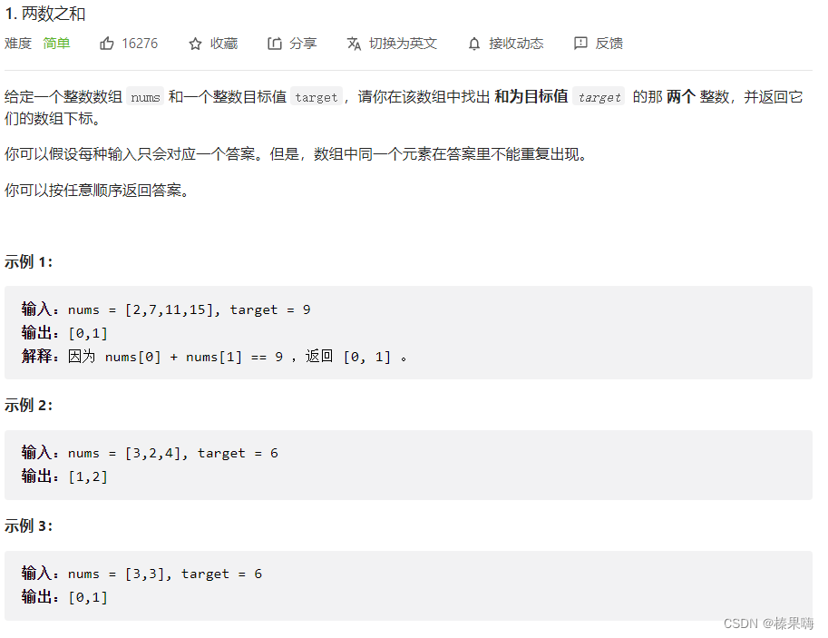 public int[] twoSum(int[] nums, int target) { //创建hashmapHashMap hashMap = new HashMap<>();for (int i = 0; i < nums.length; i++) {//是否包含if (hashMap.containsKey(target-nums[i])){return new int[] {hashMap.get(target-nums[i]),i};}//将其加入到HashMap中hashMap.put(nums[i], i);}return new int[0];}