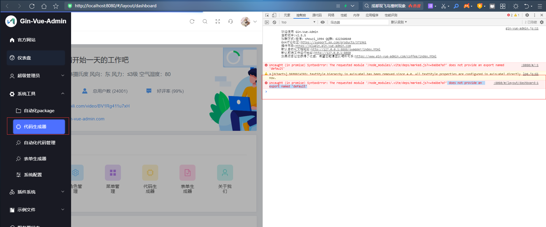 go buildserver.exehttps://gin-vue-admin.com/ 官网下载的版本,前端工程文件里,有一个错误,导致生成代码功能的页面不能打开,