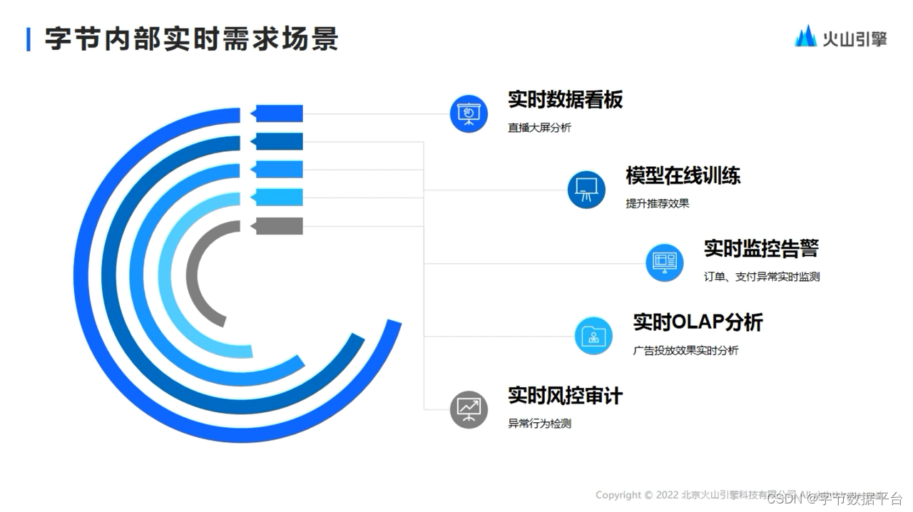 第一个案例,Bytehouse帮助一家股份制银行做实时运营监控的业务场景,通过各种数字化的工具,来促进银行用户的增长,实现数字运营的闭环。