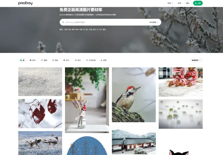 Pixabay 共有约 600000 张免费的图片、插画以及矢量图,无需注册就能免费下载,还可以商用。Pixabay 为每一位作者都提供了个人主页,使用者可以关注、点赞以及给作者打钱买咖啡。除此之外 Pixabay 还提供了免费的视频素材供用户随意使用。