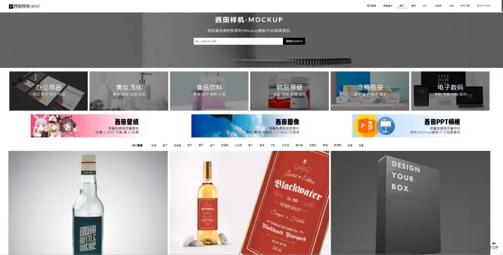 网站集成了超多样机素材,只要你想要的模板这里都能找到,办公用品、美妆类、食品类等等,分类还很明确。