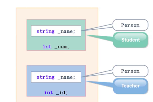 //Student和Teacher复用了Person的成员。下面我们使用监视窗口查看Student和Teacher对象,可