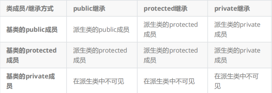 3. 实际上面的表格我们进行一下总结会发现,基类的私有成员在子类都是不可见。基类的其他成员在子类的访问方式 == Min(成员在基类的访问限定符,继承方式),public > protected > private。