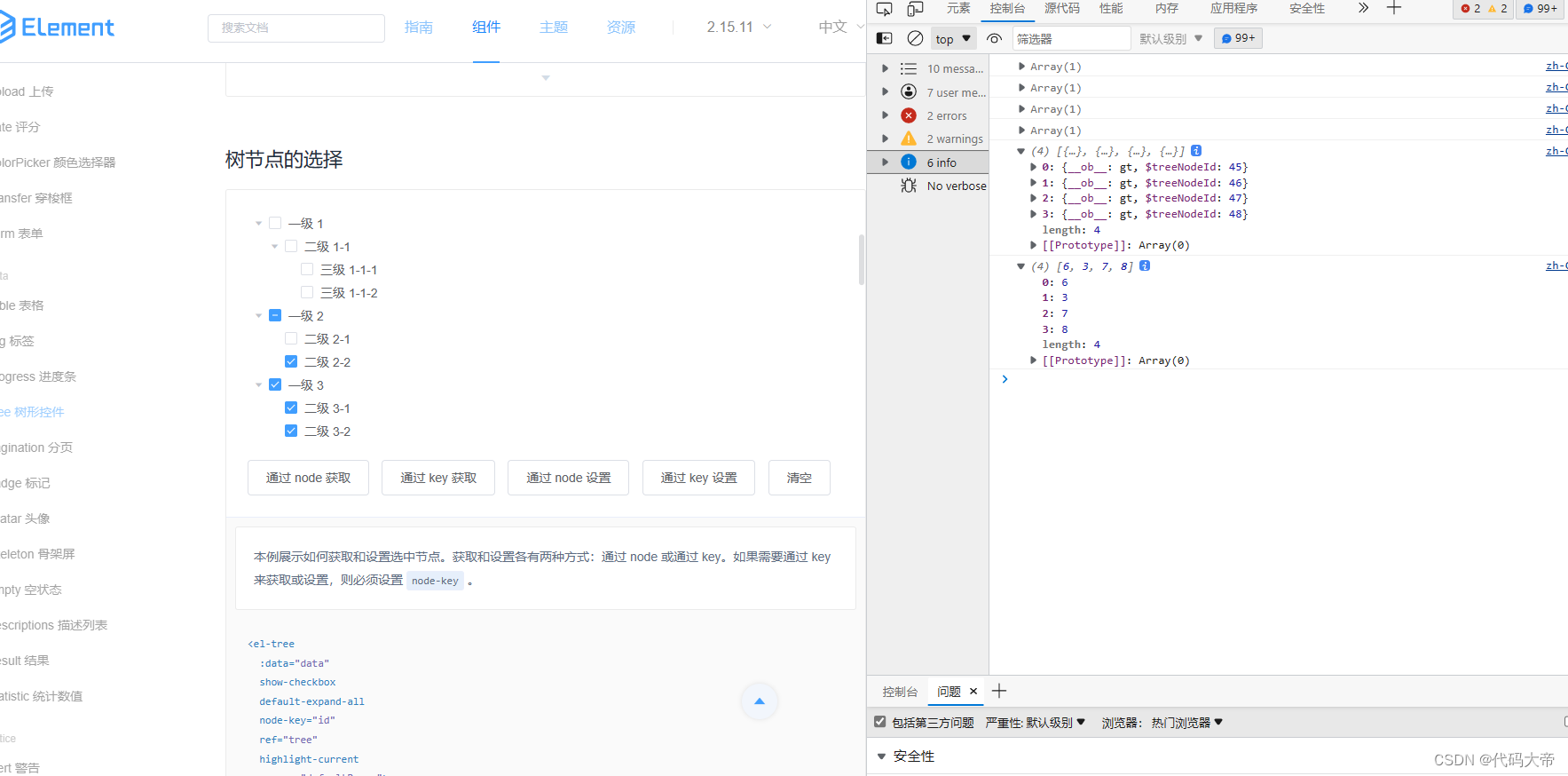 },将勾选中的节点以字符串数组的形式打印到控制台