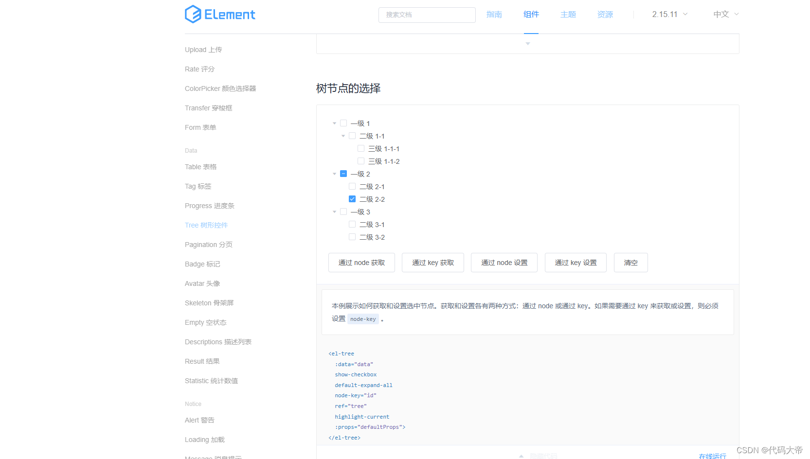 打开官网找到Tree树形控件,第一次应该很难看懂,我来详细跟大家讲解一下