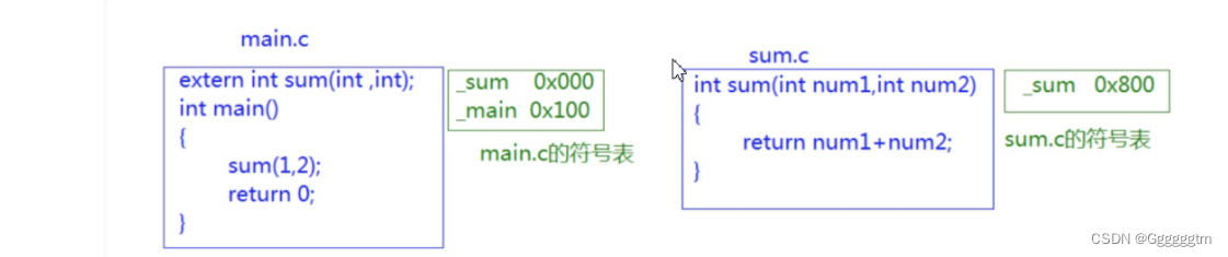 注意,多个源文件隔离编译,生成各自的符号表。最后会在链接时对符号表进行汇总和重定位。