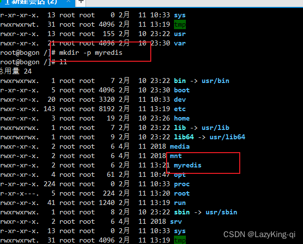 为了方便管理配置文件,在根目录下创建myredis目录来专门存在redis的配置文件;