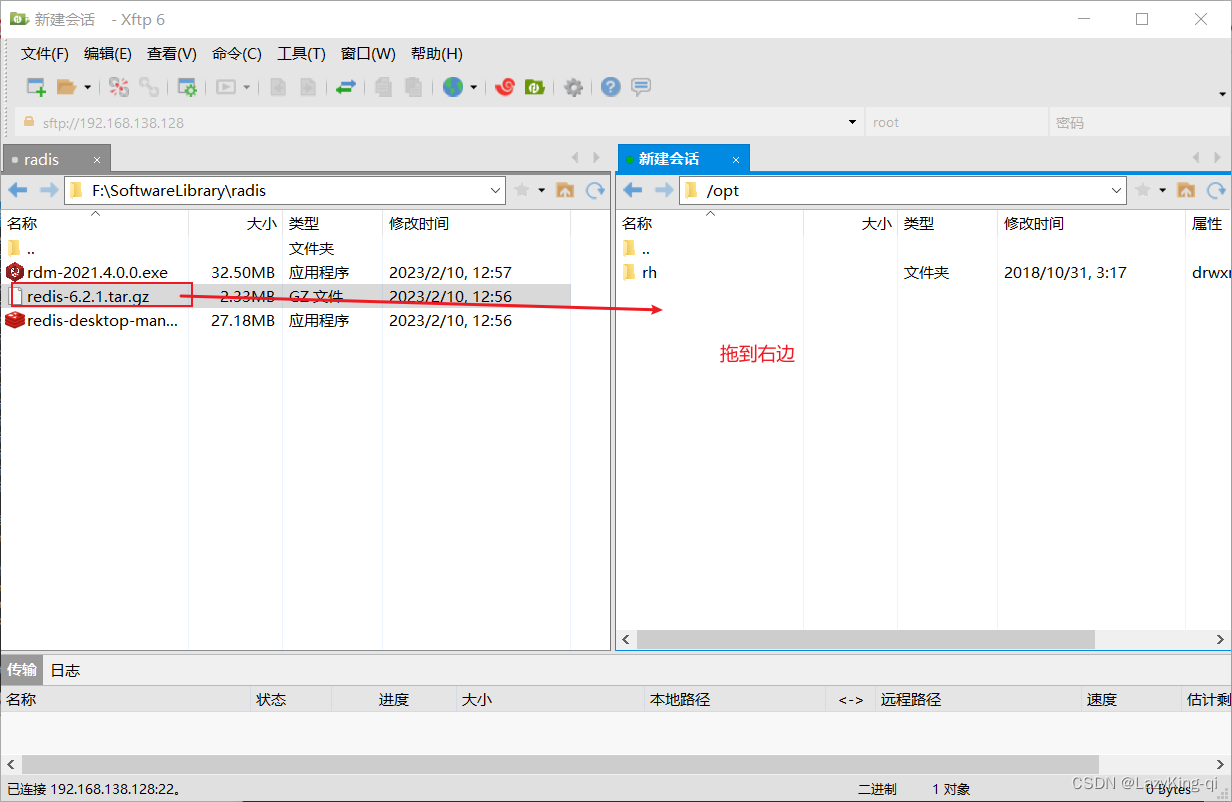 7、讲 redis-6.2.1.tar.gz文件放到/opt目录下,点击这个绿色的上传文件