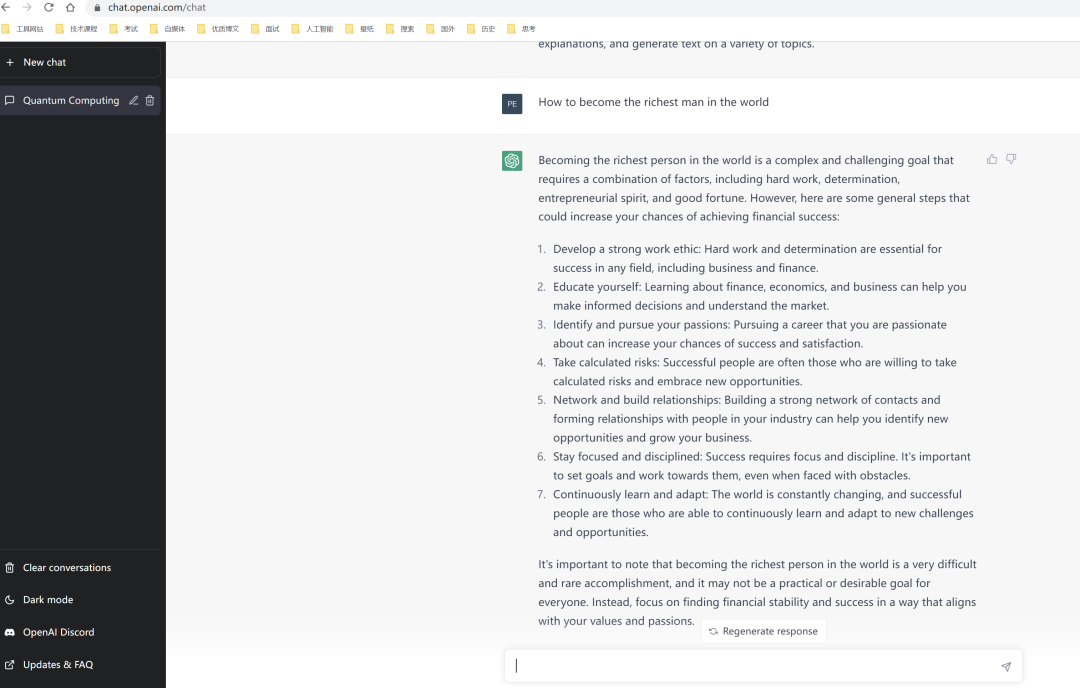PS:帮大家问了ChatGPT如何成为世界首富,秘诀在下面。