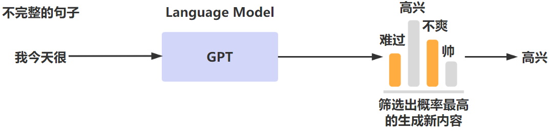 我们都知道自然语言是人类进行交流沟通的最重要的工具,因此如何让机器可以和人通过自然语言进行无障碍的沟通交流一直是人工智能领域孜孜不倦追求的目标。而NLP(Natural Language Processing,自然语言处理)就是计算机科学领域和人工智能领域专门研究让机器可以理解自然语言同时在此基础上进行响应的重要研究方向。那么要想让计算机可以识别自然语言,那么需要对应的语言模型来对文本进行分析处理。而语言模型的大致原理就是对语言文本进行概率建模,通过模型来预测下一段输出内容的概率。大致的过程如下所示,通过语言模型将一段话后面的出现概率最高的语句进行输出。