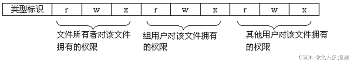 用户对文件的操作权限分为读、写和执行三种,分别用r、w、x表示。若用户没有某个权限,则在相应权限位用“-”占位,代表无此权限。