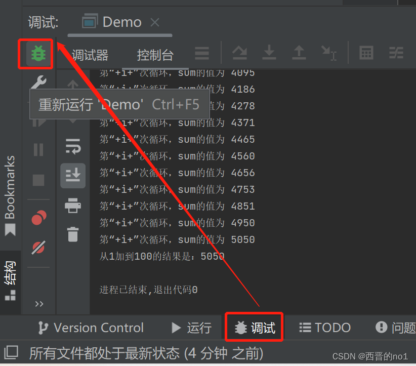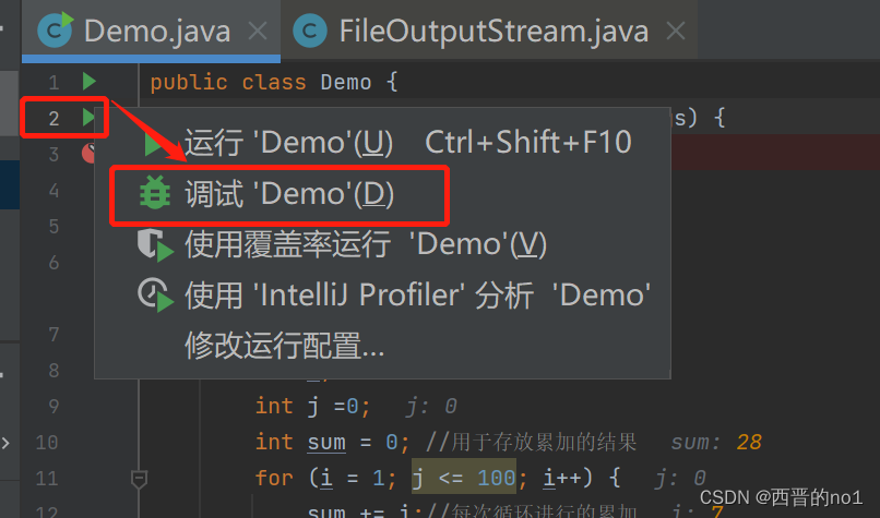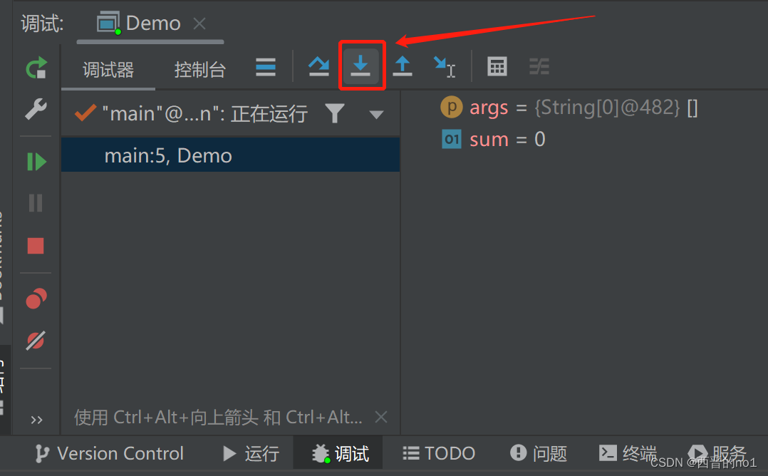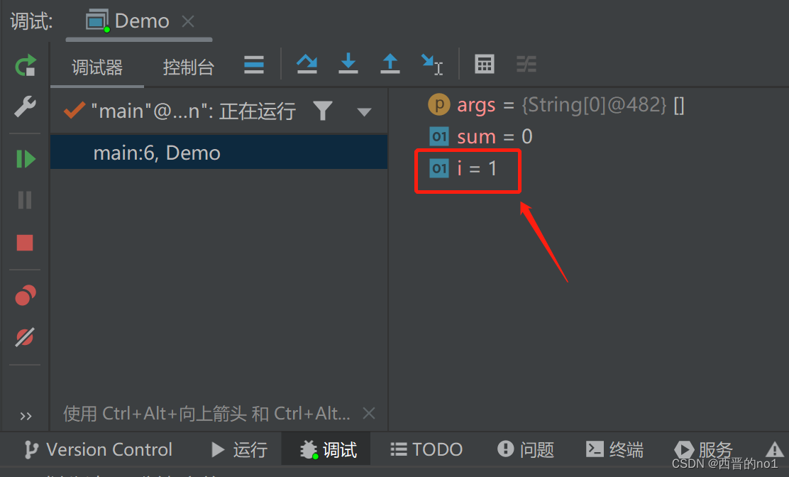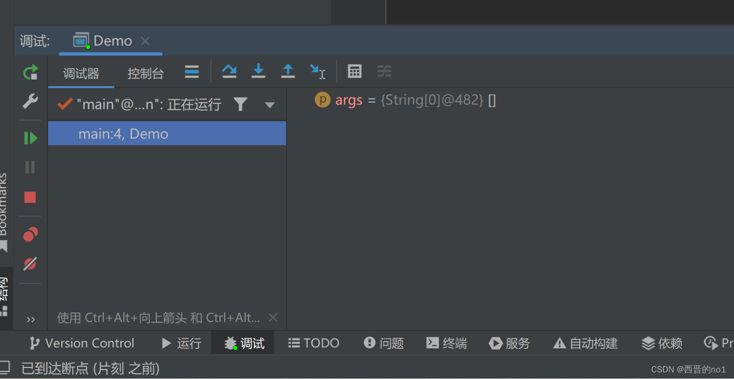 当然不仅只能这样来进行观察程序的运行,我们可以使用IDEA的Debug功能。在编程的时候使用Debug有很多的好处,比如说能够跟踪变量,可以看到变量值的变化。或者是能够迅速的找到程序中所出现的错误。