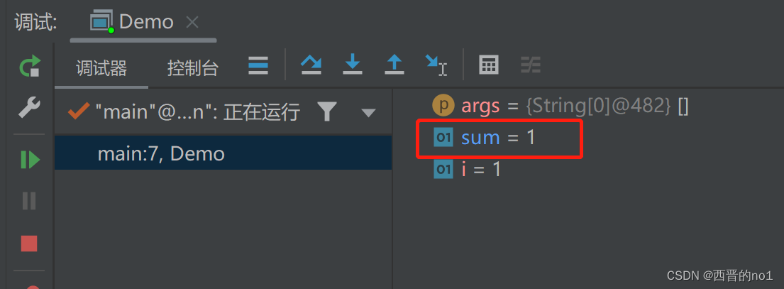 (快捷键是F7)就能够得到第一次循环后sum的值为1,如图所示: