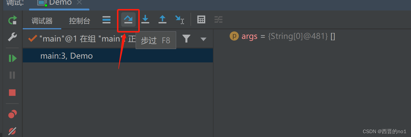 (快捷键是F8)表示的是步过,就是直接往下走,如果这一行上有方法不会进入到方法体当中,如下图所示: