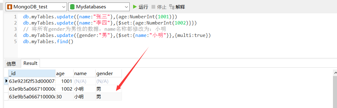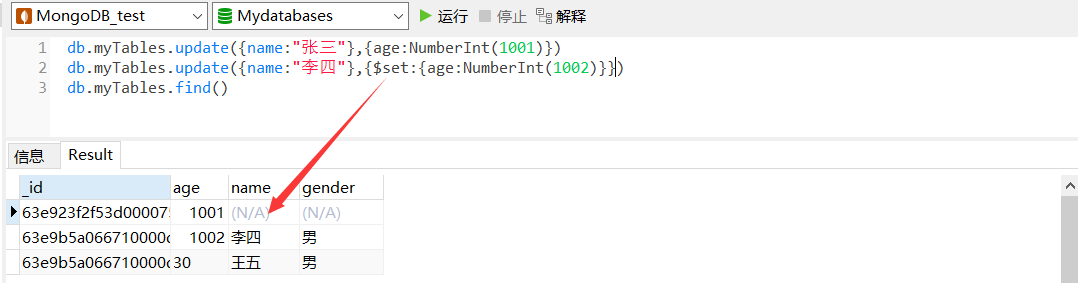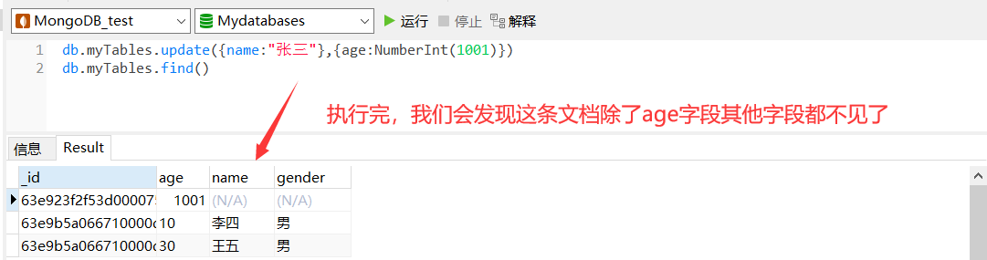 局部修改:为了解决上面的问题,我们需要使用修改器 $set 来实现,命令如下: