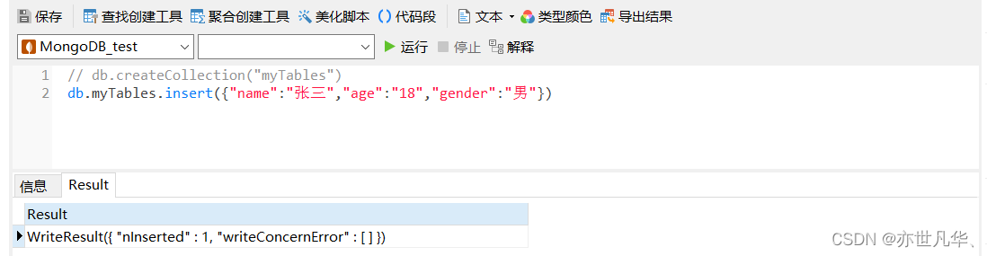 注意:在MongoDB中,集合只有在内容插入后才会创建!也就是说,创建集合(数据表)后要再插入一个文档(记录),集合才会真正创建。