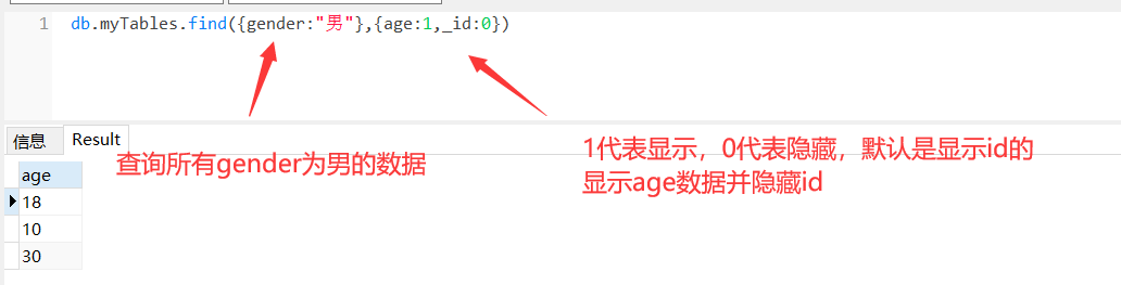 如果想查询结果返回部分字段,则需要使用投影查询(不显示所有字段,只显示指定字段)