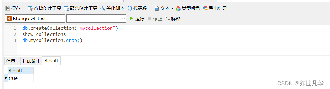 集合的删除命令(如果成功删除指定集合,drop()方法返回true,否则返回false)