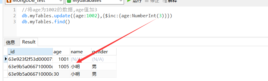 列值增长的修改:如果我们想实现对某列值在原有值的基础上进行增加或减少,可使用 $inc 运算符来实现,命令如下: