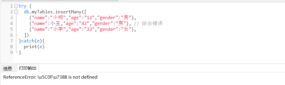 插入异常捕获使用 try catch :如果某条数据插入失败,将会终止插入,但已经插入成功的数据不会回滚掉。因为批量插入由于数据较多容易出现失败,因此,可以使用try catch进行异常捕捉处理,测试的时候可以不处理。如下: