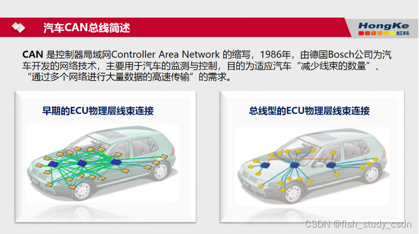 CAN 最终成为国际标准 ( ISO11898(高速应用)和 ISO11519(低速应用)),是国际上应用最广泛的现场总线之一。