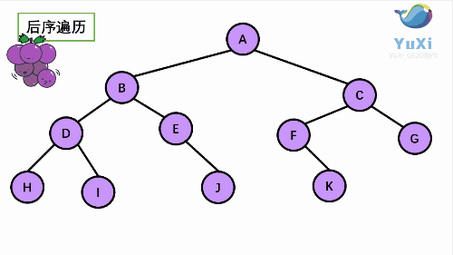 后序遍历是先打印左子树,再打印右子树,最后打印当前结点, 我们通过 PostOrder 函数来实现。