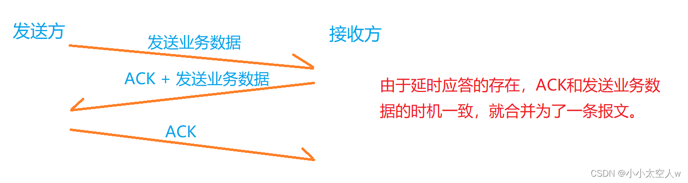 本来ack和要返回的业务数据不是同一时机,但是在延时应答的机制上,可能就会在同一时机。然后就会合并为一条报文发送过去。提高效率的方式。