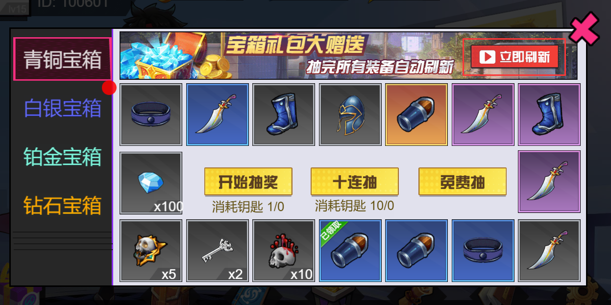 “宝箱抽奖”:通过抽奖活动,提升用户的活跃度,同时通过抽取奖品获得奖励,这里还引入广告,用户看完广告以后获得更多的抽奖的权力等。如图2-5所示: