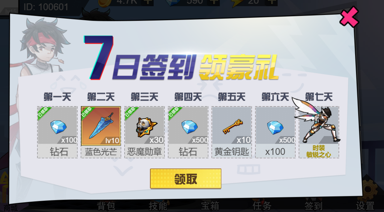 “每日登录奖励”是运营拉升用户活跃度的一种手段,连续不间断登录,奖品越来越大,对玩家越来越有吸引力,使得他每天都习惯性的来登录一下领取奖励,是一种典型的运营活动。如图 2-3所示: