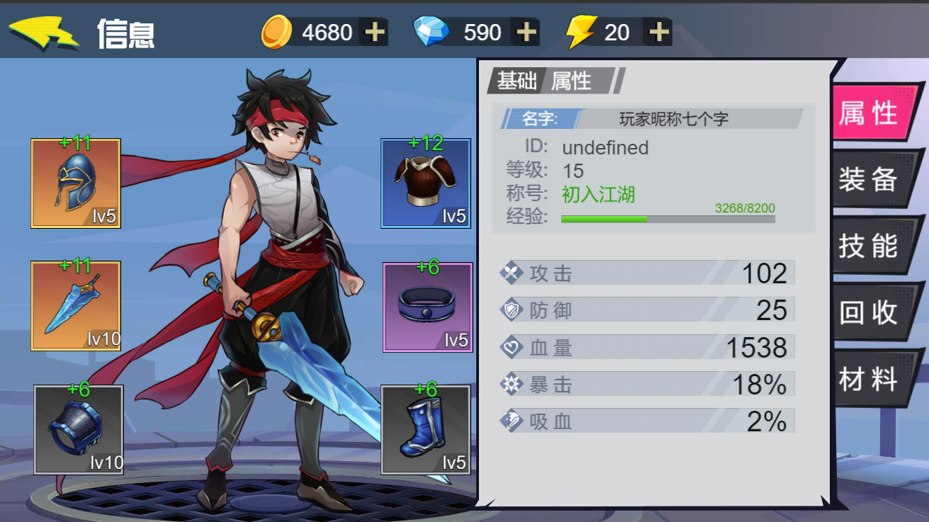 “玩家信息”,根据玩家的装备等级等信息计算出玩家的战斗力和防御力等相关数据。如图2-9所示: