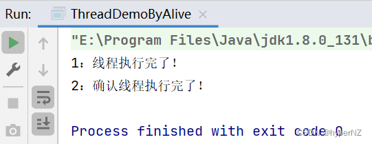 public class ThreadDemoByAlive {public static void main(String[] args) throws InterruptedException {Thread t = new Thread(() -> {for (int i = 0; i < 10; i++) {try {Thread.sleep(200);} catch (InterruptedException e) {e.printStackTrace();}}System.out.println("1:线程执行完了!");});t.start();while(t.isAlive()){}System.out.println("2:确认线程执行完了!");}