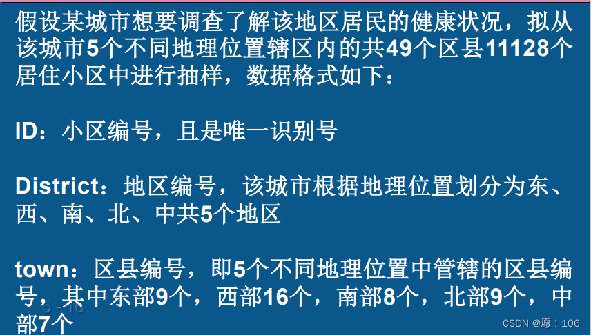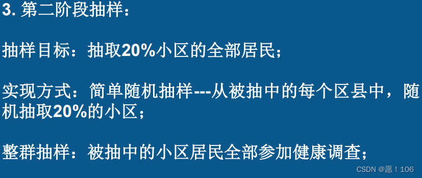 整群抽样:将总体中若干个单位合并为组(群),抽样时 直接抽取群,然后对中选群中的所有单位全部实施调查
