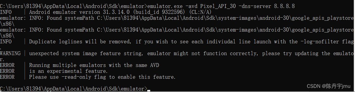 emulator.exe -avd 你的虚拟机名称 -dns-server 8.8.8.8/114.114.114.114