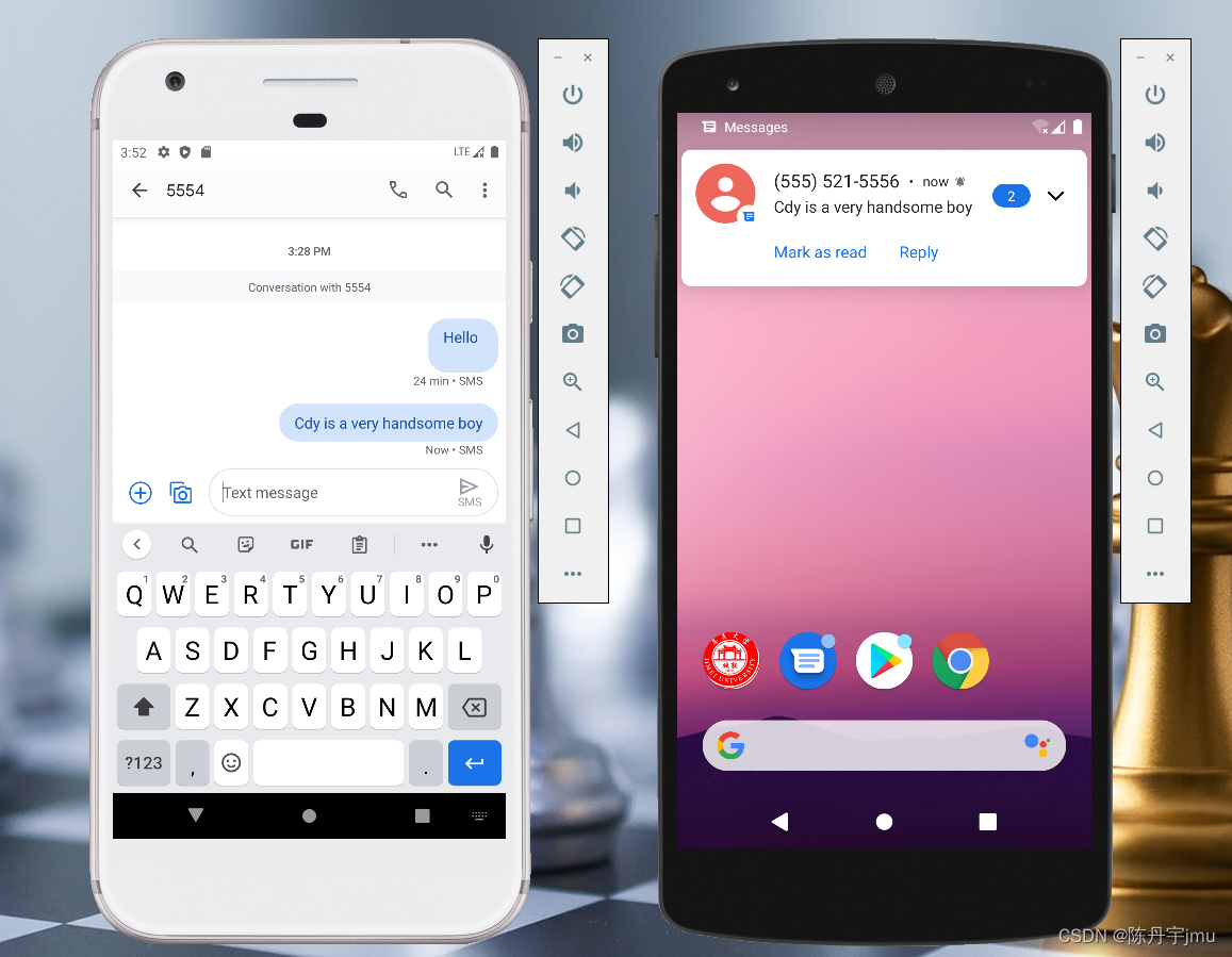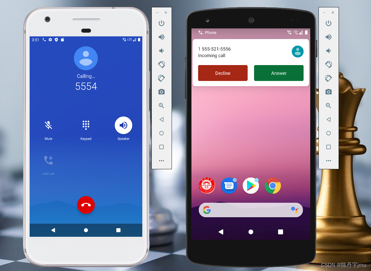 首先要知道每台虚拟设备的模拟电话号码,在Android Studio的平台上使用虚拟设备使用的端口号来指示设备的(就像手机卡一样)。