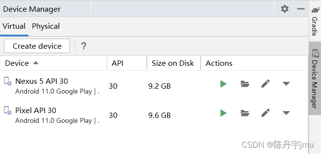 点击需要下载的Android版本等待下载完成后,就可以在Android Studio 的Device Manager上查看到你所创建的AVD设备啦。