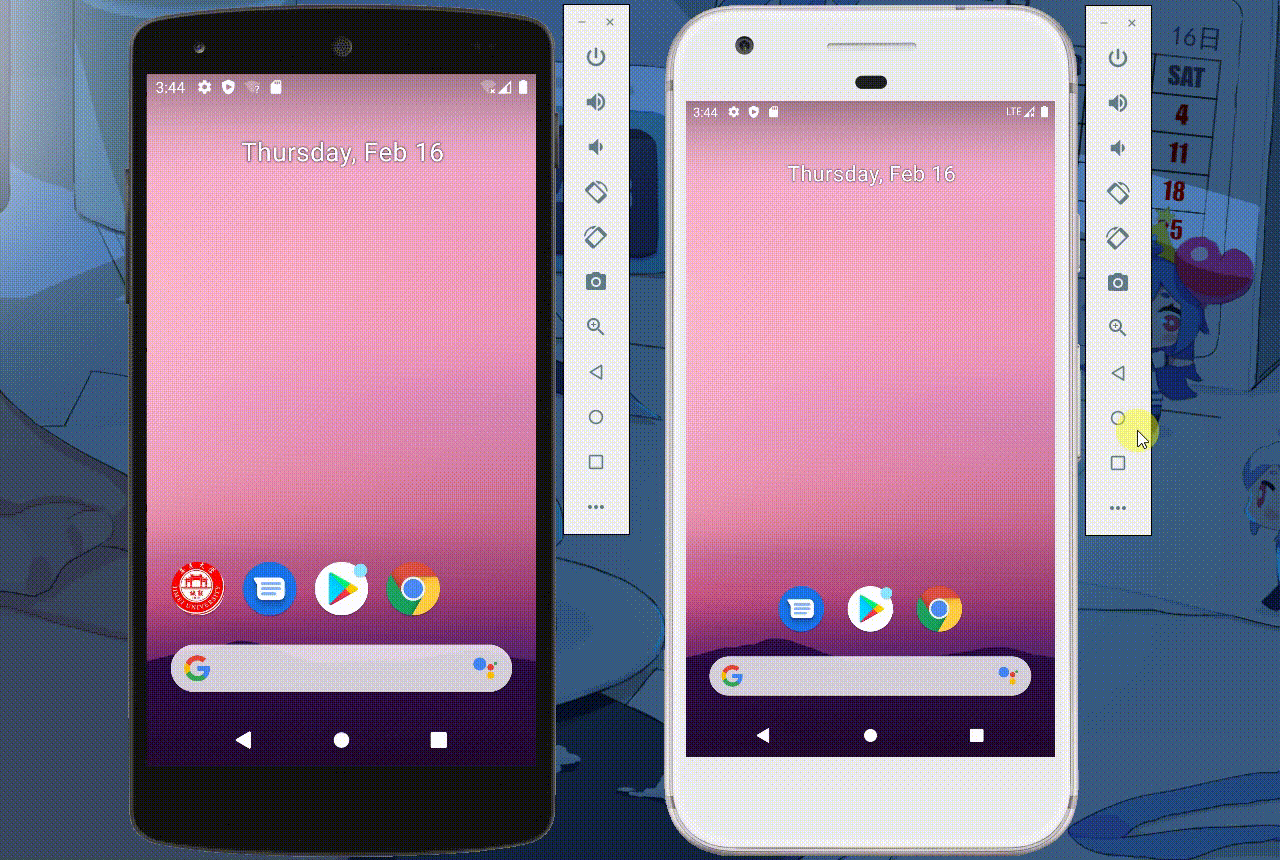 温馨提示:在电脑上同时开启两台Android的虚拟机需要量力而行,16G内存都不够用的。