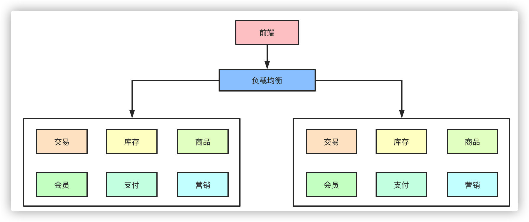 所有的业务包括你的交易系统、会员信息、库存、商品等等都夹杂在一起,当流量一旦起来之后,单体架构的问题就暴露出来了,机器挂了所有的业务全部无法使用了。