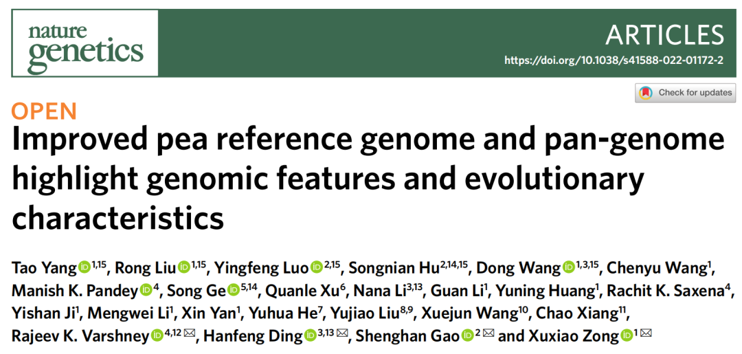 Improved pea reference genome and pan-genome highlight genomic features and evolutionary characteristics. Nature Genetics, 2022.