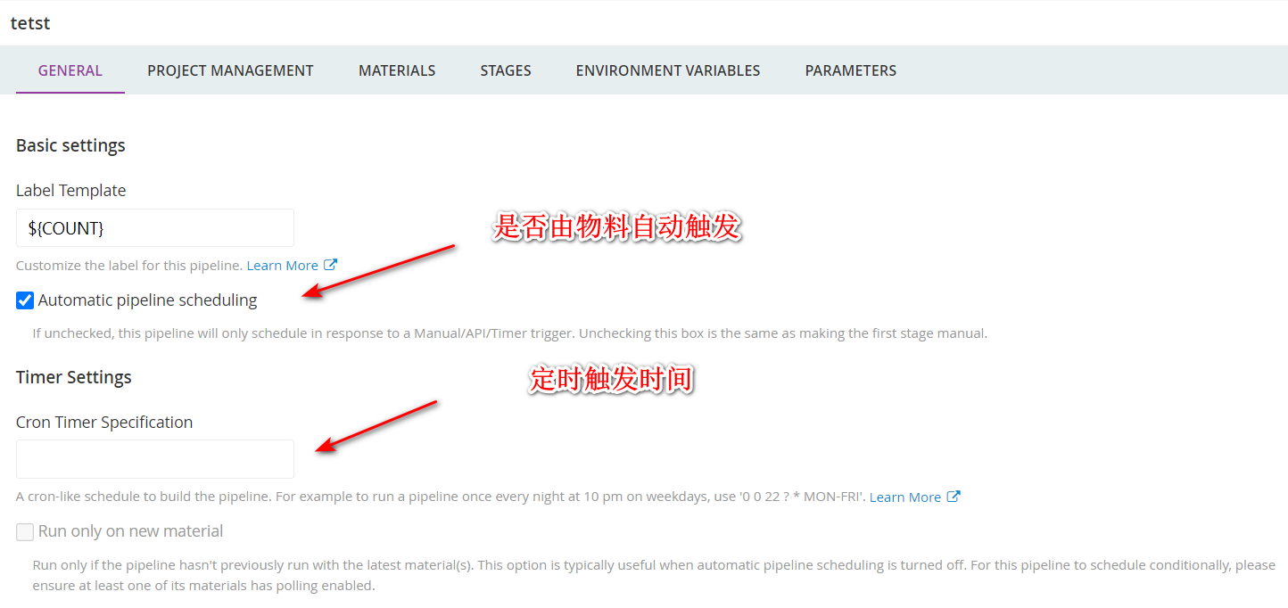 物料主要起触发流水线的作用; 包括git、svn等方式(服务器上需要安装git、svn命令),如果确实无法搭建仓库,可以看插件页是否有你需要的方式,我使用的是ftp方式,下载插件后放到 /var/lib/go-server/plugins/external 目录后重启go-server服务即可;