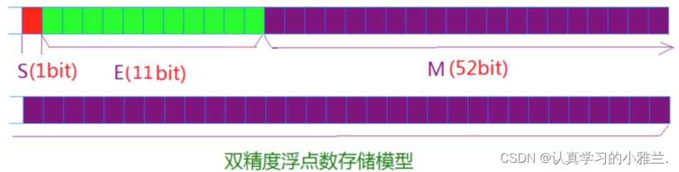 对于64位的浮点数,最高的1位是符号位S,接着的11位是指数E,剩下的52位为有效数字M。